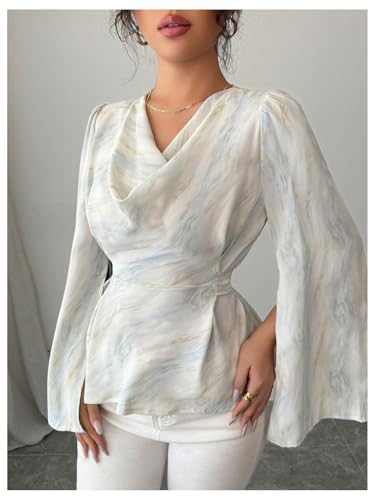HOT ! Floerns Women's Cowl Neck Blouse Top Split Long Sleeve Tie Back Dressy Casual Outfit
