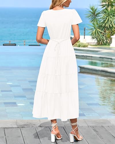 More information about PRETTYGARDEN Women Summer Midi Dresses 2025 Casual Short Sleeve V Neck Belted Tiered Ruffle Vacation Dress with Pockets