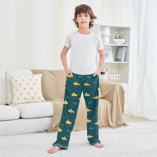 HOT ! ZZXXB Submarine and Fish Boys Long Pants Soft Trousers Elastic Waist Kids Lounge Bottoms with Pockets S-XL