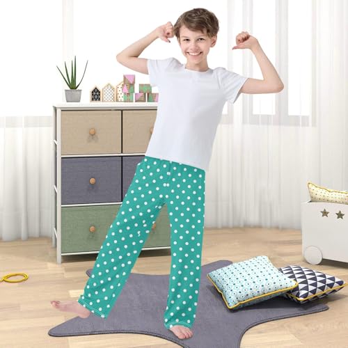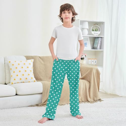 Pfrewn Pajama Pants Polka White Dot Teal Casual Lounge PJ Bottoms with Pockets, L 6