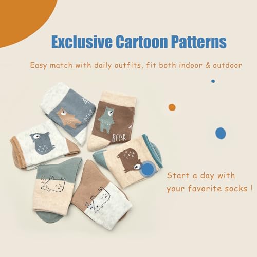 • ★【PRECISELY KNITTED PATTERNS】★Cute cartoon crew socks would attract most kids easily for its cute patterns and trendy design, easy match for your kids daily wear. High density knitting with great yarns provide enough stretch and durability for easy put on and no more squeezed legs.