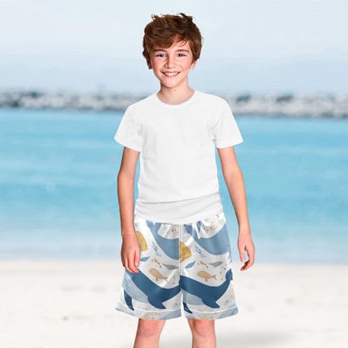 OREZI Boys Swim Trunk Blue Killer Whale Pattern Bathing Suit Swim Shorts for Toddler Kids Teens 5