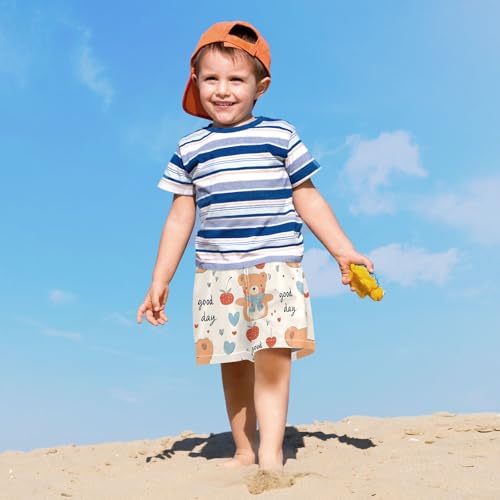 Bolaz Toddler Boys Swimwear Swim Trunks with Compression Liner 4T Bear Strawberry Lovely 4