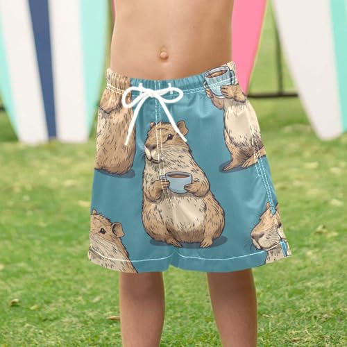 Pigsaly Boys Swim Trunks Capybara Coffee Tea Boys Board Shorts Swimsuit Swimwear Summer Bathing Suit XS 6