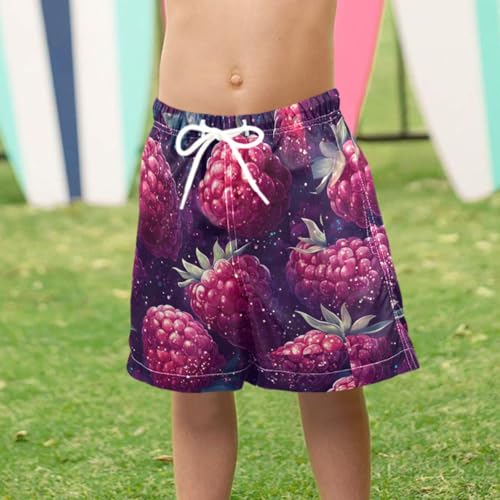 Pigsaly Boys Swim Trunks Spring Summer Raspberry Fruit Red Berry Boys Board Shorts Swimsuit Swimwear Summer Bathing Suit 4T 6