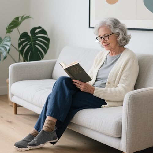 • Easy On and Off: Designed for convenience and independence, the adjustable hook-and-loop closure provides a secure, customized fit that accommodates high insteps and swelling. These diabetic slippers are perfect for seniors or those with limited mobility, no need to bend