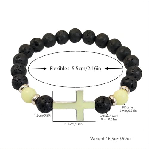 8mm Natural Volcanic Stone Bracelets for Men,Luminous Cross Bracelets,Healing Crystal Elastic Stretch Beads Bracelet,Religion Holy Communion Bracelet for Women 5