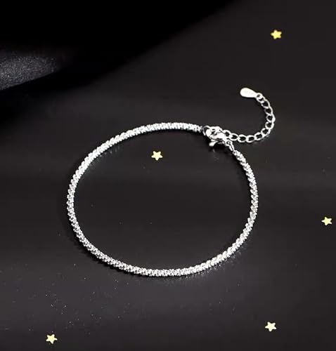 QLKILYR Dainty Shiny Silver 18K White Gold Plated Simple Chain Bracelet for Women 6