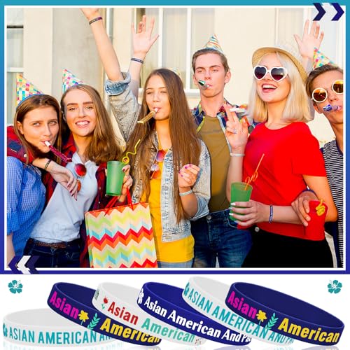 HOT ! 100 Pcs Asian American and Pacific Islander Heritage Month Decorations Bracelets AAPI Month Decorations 5 Styles Rubber Stretch Silicone Wristband Bracelets for AAPI Party Supplies