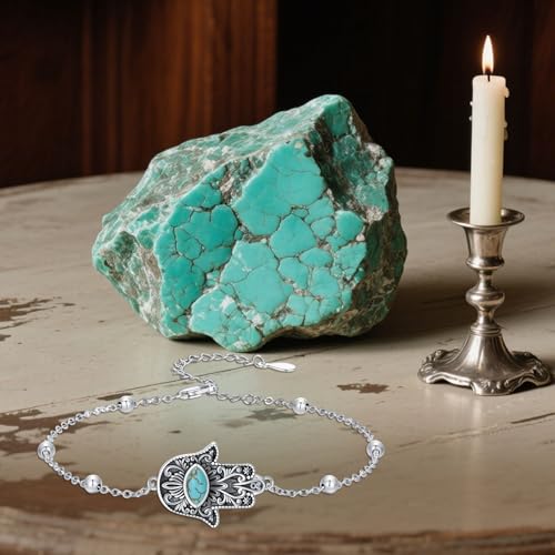 • MATERIAL- Our Hamsa evil eye bracelets are made from 925 sterling silver, very suitable for skin sensitive.PLEASE NOTE: The stone is genuine turquoise, and every gem's color/shade/matrix will vary