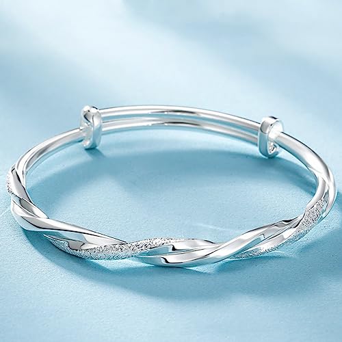 HOT ! Sterling Silver Bangle Bracelets for Women 925 silver Cuff Bracelet Adjustable Jewelry Fashion Simple Open Bangles Cuff Jewelry for Women Mom Wife Mothers Day Valentine Gift