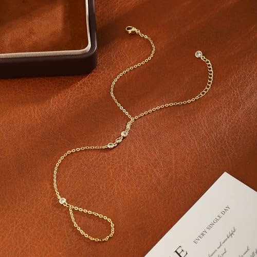 HOT ! Gold Bracelets Set for Women, 14K Real Gold Plated/Silver Dainty Link Chain Bracelets Ring Hand Chain Charm Stackable Cuban Link Paperclip Bracelet Non Tarnish Jewelry Accessories Gifts