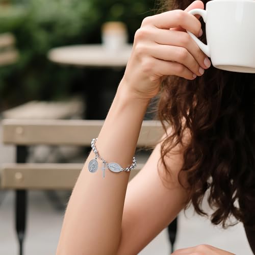 bracelets for women, Womens Cross Christian Jewelry, Stainless Steel Jesus Round Bracelet, Suitable for Weddings, Engagements, Parties, Can Be Given to Friends, Partners, and Relatives 7