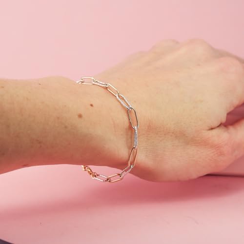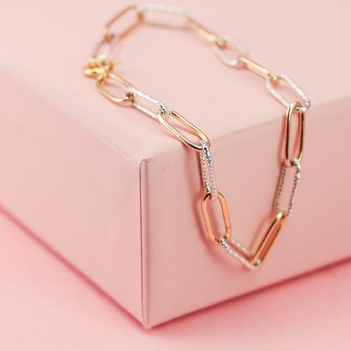 • 2.Two-Tone: The sparkly paperclip bracelet is made from 14K gold filled and unplated solid sterling silver, giving you the best of both worlds. Gold fill features a layer of gold that is approximately 100x thicker than plated jewelry, which won’t discolor or tarnish over time. Sterling silver won’t flake and easily polishes up if needed. Nickel-free, waterproof, and shower-friendly