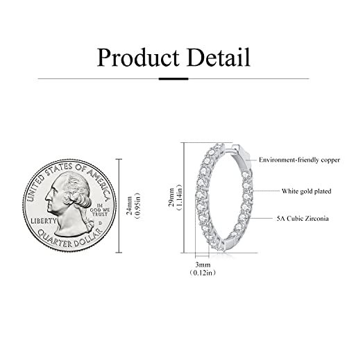• 【Hoop Earring】 Our hoop earrings are made of copper with white gold plated and cubic zirconia. Lead-free, Nickel-free and Hypoallergenic, it will not irritate your sensitive skin or turn your ears green. The white gold hoop earrings bring a graceful look to any special occasion.