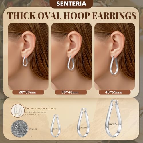 HOT ! Senteria 5MM Wide Sterling Silver Hoop Earrings For Women Hypoallergenic Thick Silver Hoop Earrings Lightweight Oval Big Silver Hoop Earrings for Women 30/40/65MM