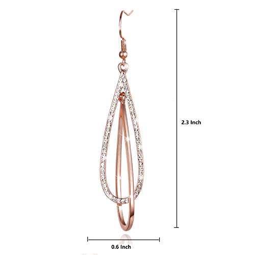 LOVE&CLOVER 18K Rose Gold Plated Earrings for women dangling, Crystal Drop Dangle Earrings Elliptical Ring Teardrop Women hypoallergenic Wedding Gift Rose Gold 6