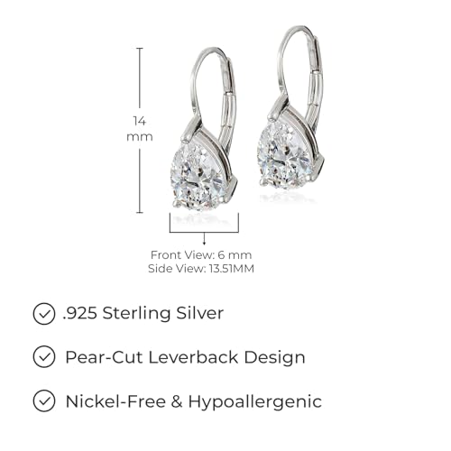 Amazon Essentials Sterling Silver or Gold Plated Sterling Silver Pear Cut Cubic Zirconia Leverback Earrings (previously Amazon Collection) 5