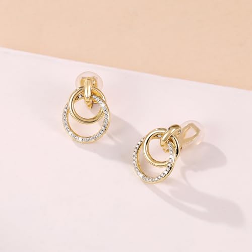 14K Gold Plated Chunky Clip On Earrings for Women 14k Gold Knot Link Clip Earrings Silver Rhinestone Hoop Clip On Earrings Jewelry for Women 6