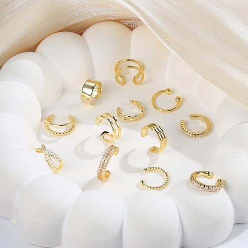 • [Gold Ear Cuff] You will receive a set of 12pcs gold ear cuffs in different designs, including simple classic style cuff earrings and exquisite cubic zirconia cuff earrings to add sparkle to your daily outfits