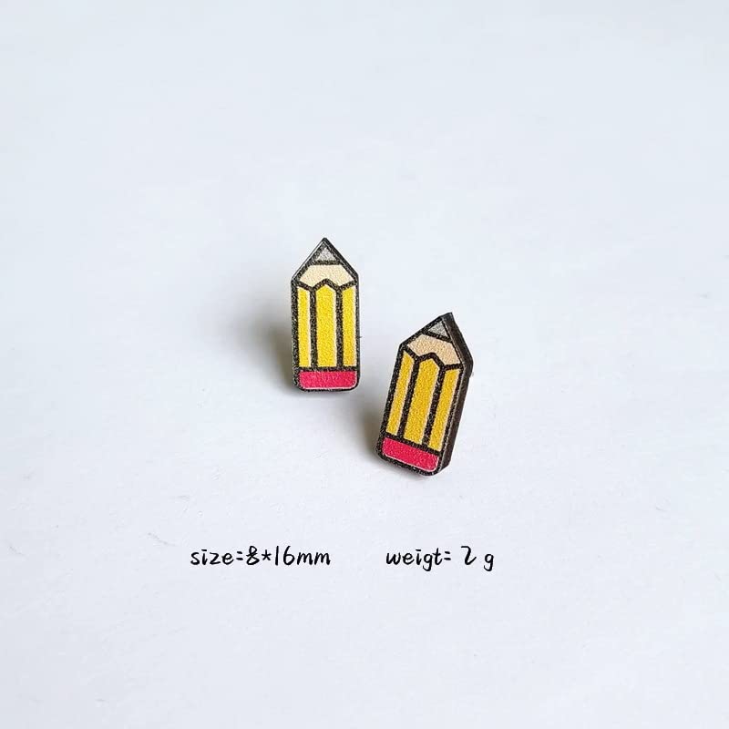 Pingyongchang 6 Pairs Cute Teacher Stud Wood Earrings Funny Handmade Colorful Book Pencil Crayon Ruler Wooden Student Earrings for Women Back to School Jewelry Teacher Graduation Gift 5