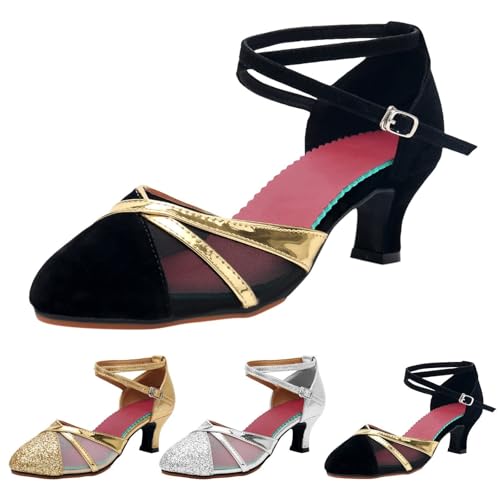 More information about Sandals for Womens Latin Dance Shoes Mesh Rhinestone Heeled Ballroom Salsa Tango Party Sequin Dance Shoes Sandals for Women Dressy Heel (Gold, 8)