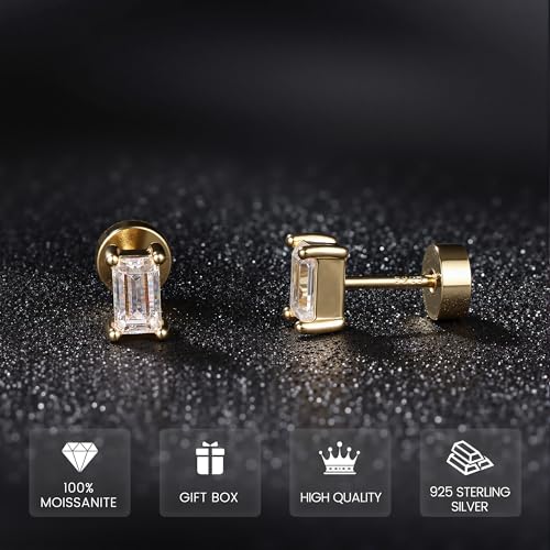 HOT ! Moissanite Earrings Studs Flat Back Earrings Hypoallergenic - 14K Gold Plated Sterling Silver Earring for Women Men Small Dainty Cartilage Helix Piercing Jewelry D Color VVS1