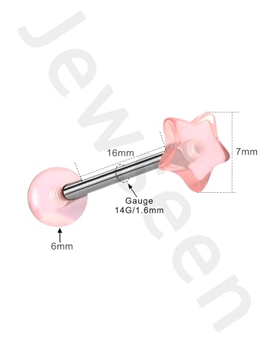 Jewseen 4Pcs G23 Implant Grade Titanium Tongue Rings 14g Tongue Piercing Jewelry Acrylic Star Tongue Barbell for Women Men 6