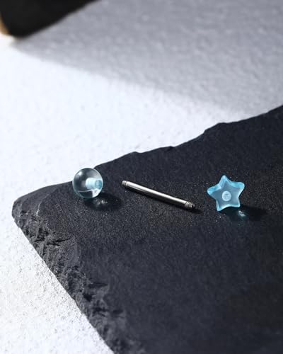 Jewseen 4Pcs G23 Implant Grade Titanium Tongue Rings 14g Tongue Piercing Jewelry Acrylic Star Tongue Barbell for Women Men 5