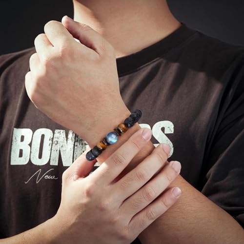 • 【Material】The bracelets are made of natural moostone,tiger eye stone and volcanic rock , lightweight and suitable for daily wear and any occasion,can be worn and protect him for a long time.