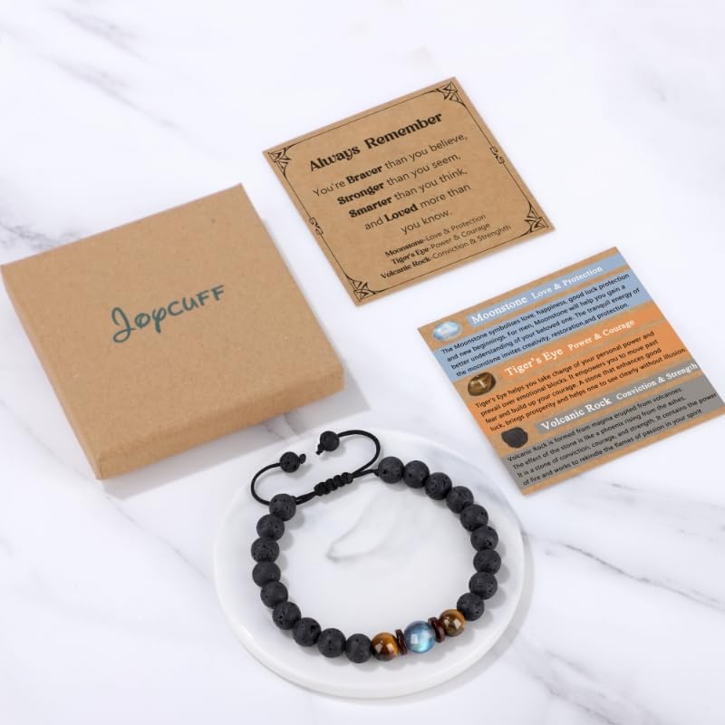 • 【Gifts for Men Boys】This handmade bracelet combined with Love Moonstone, Courage Strength and Volcanic Rock, brings him the protection, power, self-confidence and conviction. An amazing gifts for son, teenage boys, teen boys gift ideas