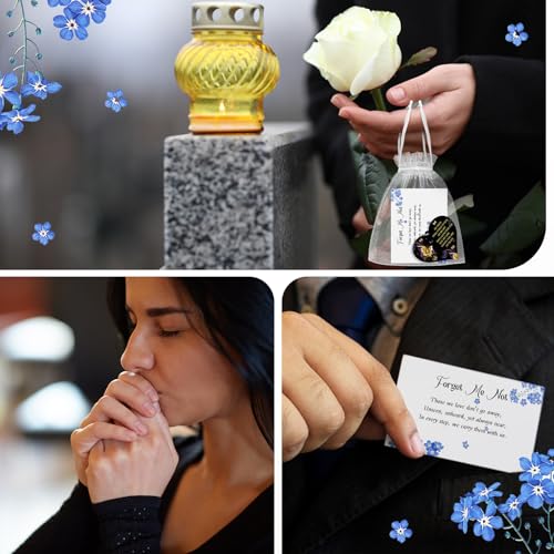Namalu 100 Sets Funeral Favors Celebration of Life Favors for Guests Bulk Forget Me Not Themed Gifts Funeral Keepsakes with Heart Charms Memorial Prayer Cards Ideas Sympathy Gifts 5