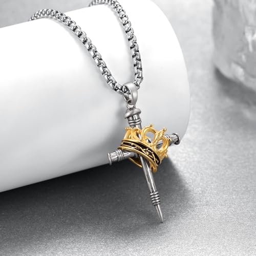 • Nail Cross Necklace for Men Material: The cross and crown necklace is made of 925 sterling silver and the chain is stainless steel. Hypoallergenic, lead-free, nickel-free, cadmium-free.