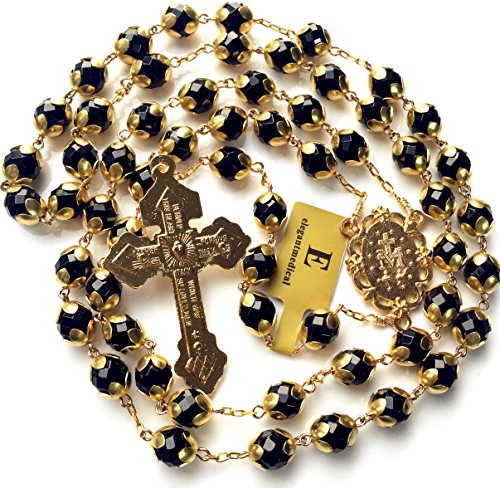 • elegantmedical 8MM Agate Beads 5 Decade Rosary Italy Pardon Cross catholic necklace Mens/Womes Gift & Box