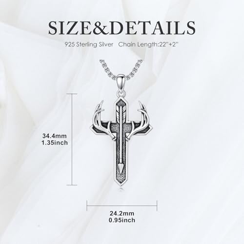 • Hunting Jewelry Gifts: This sterling silver antler cross necklace is packaged in an exquisite gift box with a polishing cloth inside. Whether it is given to friends, husband, father, grandfather,brother on special occasions such as birthday, Father's Day, Christmas, Valentine's Day, anniversaries, Thanksgiving, or worn by yourself in daily life, this silver cross pendant is a good choice