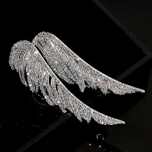 HOT ! Crystal Angel Wings Brooch Pins,Elegant Rhinestone Feather Wings Lapel Pin Suit Coat Breastpin for Women Men Wedding Party Jewelry Gitfs