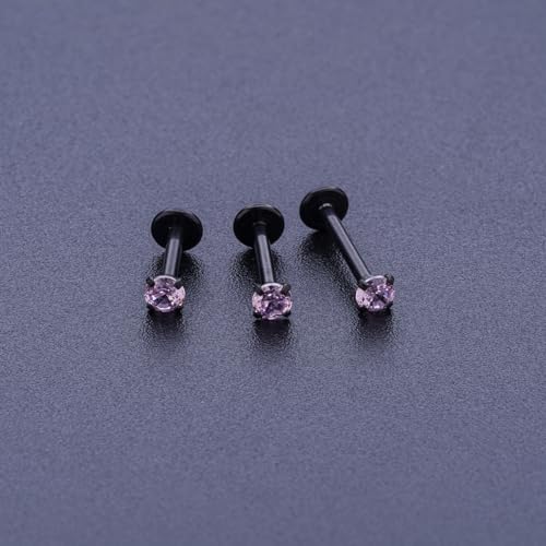 16G 18G 20G Threadless Push in Lip Ring for Women Men Black Stainless Steel CZ Top Labret Stud Jewelry for Nose Tragus Helix Cartilage Monroe Piercing Jewelry 6mm 8mm 10mm 5