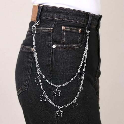 Star Pants Chain Hip Hop Silver Y2k Jeans Belt Chains Cute Vintage Punk Chunky Trouser Pocket Keychains Goth Rock Layered Wallet Jewelry Accessories for Women Men Girls 5