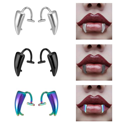 • 3 Pairs Fake Lip Piercing Rings: These fake lip piercing jewelry are super cool! The set comes in silver, black, and colorful set, offering variety for different moods. The fangs are sharply detailed, mimicking real vampire teeth. The piercing part is sleek and well - crafted. Whether you want a spooky look or a bold, colorful statement, this three - pack has got you covered. They're a unique addition to any jewelry collection