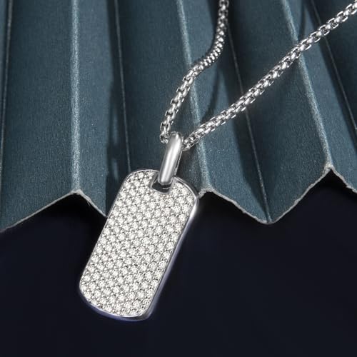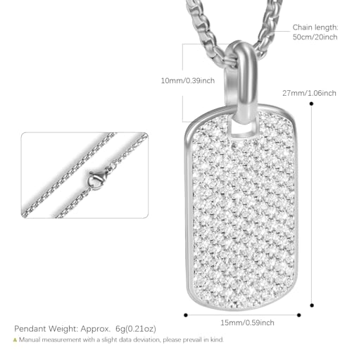 • ✔ 【Iced Out Pendant Necklace】This iced out necklace features pave zirconias looks great. The small yet shiny zirconia mades this dog tag necklace for men more dazzling and fashion, highlighting your personality and style.
