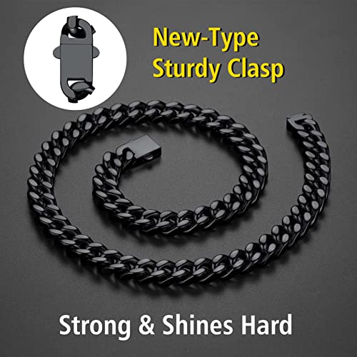 ChainsProMax Can Engrave Men Miami Cuban Link Chain, 5/7/9/12.5MM Width, 18-30" Length-Stainless Steel/Gold Plated/Black (Send Gift Box) 5