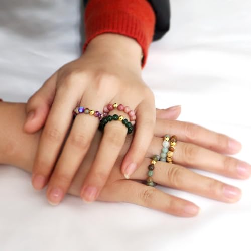 • ▲Natural Stone Beads Elasticity Finger Rings:There are six styles of this gemstone beaded ring, made with different stone beads, you can share with your friends, couples, family members.