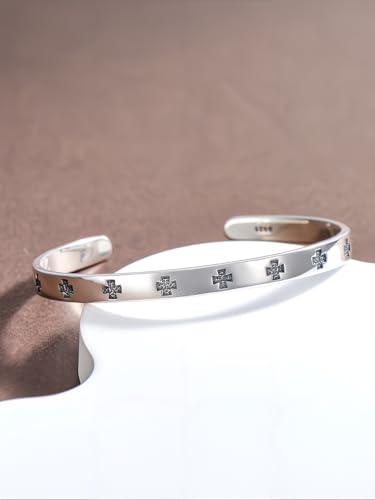 • 【S925 Sterling Silver Cuff Bracelet for Men】Our christian cross cuff bracelet made from hypoallergenic S925 sterling silver is nickel-free lead-free and cadmium-free, making it safe for even the sensitive skin.