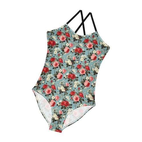 Girls One Piecing Swimsuit Roses Pink Red Kids Bathing Suits Swimming Suits 6