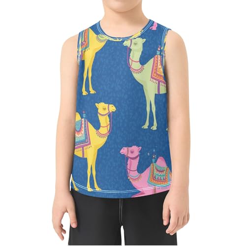 HOT ! Colorful Camels on Blue Boys Tank Top Sleeveless T-Shirt Athletic Tank Tops 3-15T