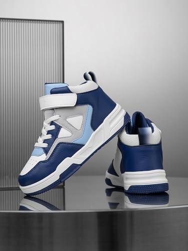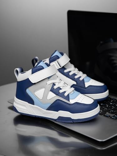 Boys Girls Outdoor Indoor Board Shoes with Leather Upper, Breathable and Comfortable with Soft Padded Neck, Fashionable Retro Street Style, Basketball Shoes Suitable for All Seasons 6