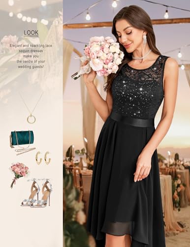• Wedding Guest Dress - It is a flattering midi dress perfect for a wedding that mainly convinces us with its romantic and gorgeous look. This hi low lace dress features satin belt, lace top, sleeveless design, sexy deep V back, simple color, which accentuate your perfect figure.