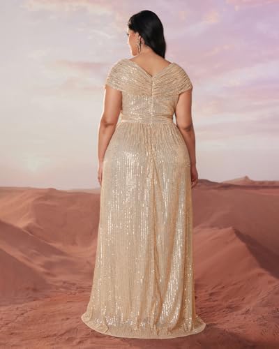 Women's Plus Size V Neck Sequin Formal Maxi Dress A-Line Prom Evening Party Gowns 4