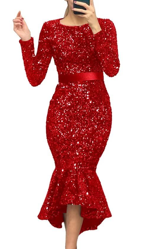 • Features:Scoop Neck prom dresses 2025 with Belt,Long Sleeves Sparkly Sequin mermaid evening gowns,Pleated formal dresses,sexy and elegant formal gowns.tight mermaid dress for women formal party gowns,backlesss bridesmaid dresses for wedding,plus size high waist prom dresses,lace up back ,built in bra.ideal gift for women,teen,junior