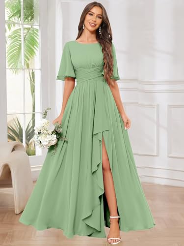 • Occasions: Flutter sleeve semi formal dress for women with slit, long ruched chiffon wedding guest dress with sleeves, boho pleated chiffon party dress, short sleeve maid of honor gown, a-line mother of the bride dresses for women, corset evening party gowns floor length, casual wedding dresses for bride, ruffles chiffon prom dress with sleeves